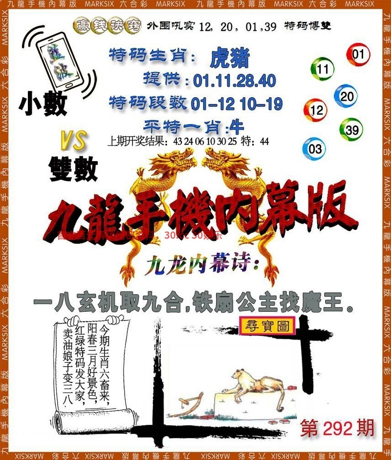 292期⑨肖:牛蛇虎龙鼠羊马猪鸡 |