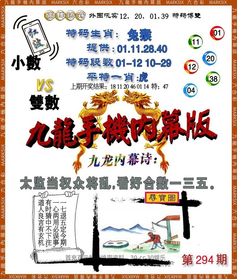 294期⑨肖【虎龙马蛇羊鼠猴猪牛】开:鼠18准 |